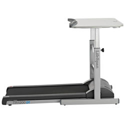The Treadmill Desk is the perfect way to integrate exercise into your daily routine. It has a larger 2.25 HP High Torque motor, and has been designed for those using the treadmill desk for up to 6 hours a day. It includes a sturdy work surface measuring 46.75" wide and 32" deep to easily support your laptop, printer, computer display and other electronic devices. The large armrests create stability as you type or write and the cable slot in the desktop along with the cable tray beneath the surface provide a secure place to stow extra cords and cables from your electronic office. Unlike the TR1200-DT5 treadmill desk, the DT7 desktop has an electric height adjustment with two memory presets making it ideal for community settings. The whisper-soft treadmill comes standard with two of LifeSpan's trademark features. Intelli-Step counts and records the number of steps you take and displays them on the console. More accurate than a pedometer, Intelli-Step automatically detects the impact of your foot striking the treadmill belt. Intelli-Guard automatically stops the belt if you step off during your workout for added safety and is a major development in protecting treadmill users and those around them. The integrated LED digital display shows steps taken, walking time, calories burned, distance traveled and walking belt speed. In addition, this new console is Bluetooth-enabled so you can connect wireless to your Windows or OS X computer to automatically track results while you exercise. Once you're done walking, sync your data with your LifeSpan Fitness Club account to retain your exercise history online. Bluetooth-enabled to wireless sync your data to your computer and share with a specially designed app that sits on your computer desktop. Track your steps taken, walking time, calories burned distance traveled all on your computer screen as you walk. Once complete, sync your data with your online LifeSpan Fitness Club account to retain your walking history. Location, location, location! This console is perfectly located for easy access without taking away any of your desktop area. The digital LED display shows steps taken, walking time, calories burned, distance traveled and walking belt speed. The console has a safety key that shuts down the treadmill when removed. The padded armrests add comfort and support to help avoid wrist fatigue in long work sessions. Great for the elbows to rest on, too! Comes standard with two of LifeSpan trademarked technologies: The built-in Intelli-Guard automatically stops the belt if you step off during your walk for added safety and is a major development in protecting treadmill users and those around them. With the Intelli-Guard, you no longer have to worry about leaving your treadmill running if you have to step off to take a call. When your foot no longer continuously strikes the belt surface for 20 seconds, your treadmill will automatically pause. Intelli-Step counts and records the number of steps you take and displays them on the console. More accurate than a pedometer, Intelli-Step automatically detects the impact of your foot striking the treadmill belt. 1" Thick composite board and durable laminate surface set on a rigid steel frame. It is large enough to hold all of your electronic devices and still have ample room for a drink and notepad. For other materials The rounded corners finish off the design - not just for aesthetics, but again putting safety at the forefront of LifeSpan design. Even at the highest setting, this table will remain stable. The desktop frame is unattached from the treadmill and stands alone, ensuring that any movement of the treadmill stays isolated and is not transferred to the desktop. Unlike the LifeSpan Fitness other models of treadmill desks, the DT7 allows users to easily and conveniently adjust the desktop height with its electric height adjustment feature. The desktop adjusts at a speed of 2.5 mm per second and has two memory pre-sets.
